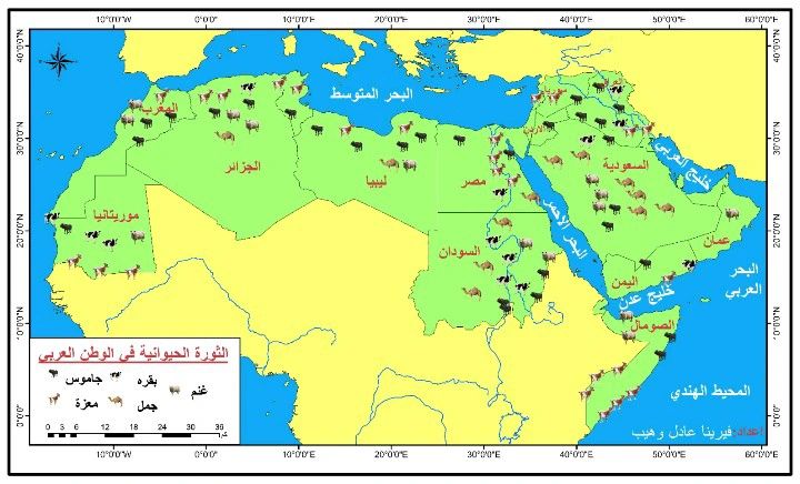 فيما يلي لمحة عن الأعداد التقديرية للثروة الحيوانية في عام 1997 في مناطق مختلفة من الوطن العربي: