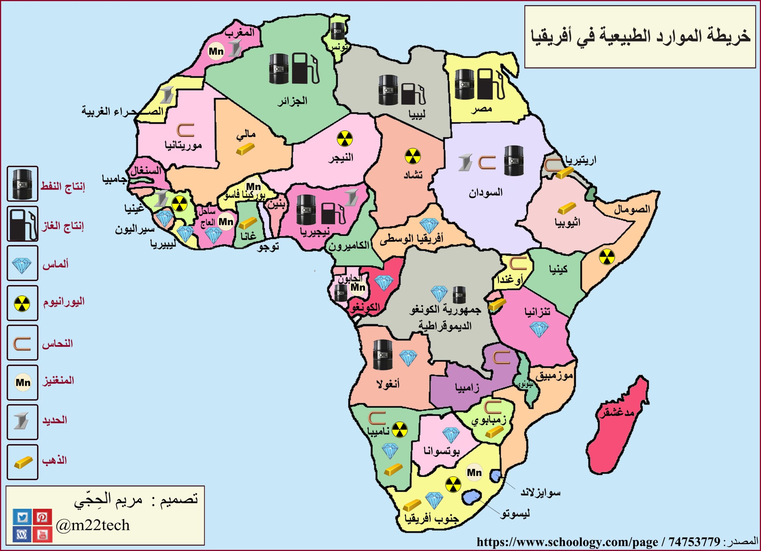 أفريقيا غنية بالموارد الطبيعية، بما في ذلك النفط، الغاز، الماس، الذهب، واليورانيوم. ومع ذلك، فإن هذه الموارد لم تُترجم دائمًا إلى رفاه اقتصادي لسكان القارة، بل كثيرًا ما كانت مصدرًا للنزاعات والاستغلال.